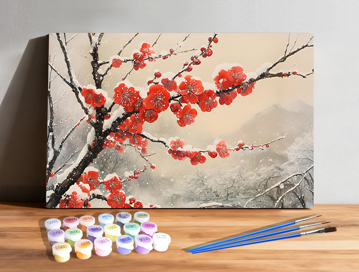 Paint by Numbers:Red Plum Blossoms in the Snow