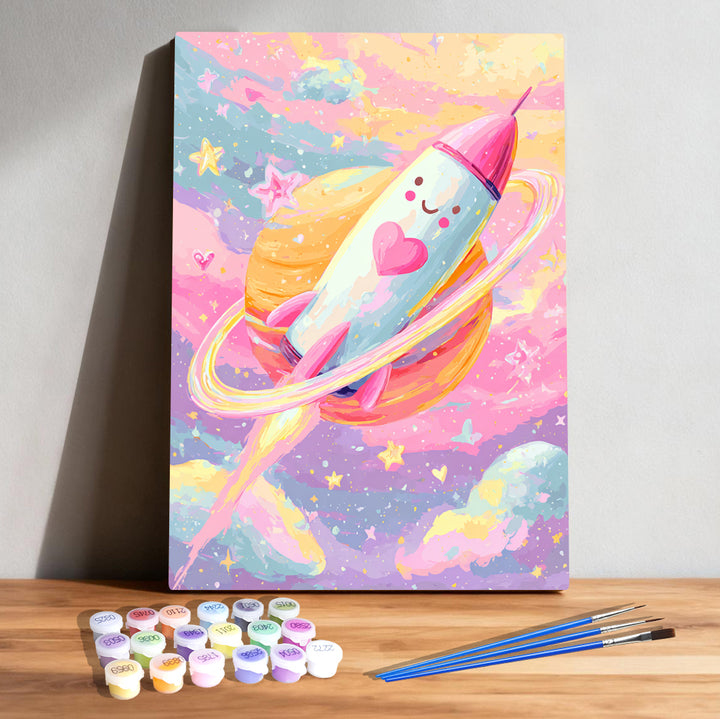 Rocket & Friendly Planet Paint by Numbers | Kids Space Adventure Art Kit | PaintEasy