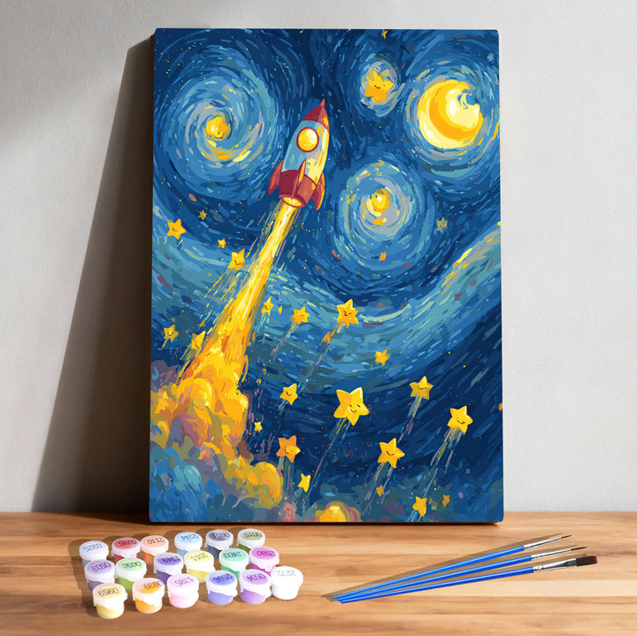 Rocket & Shooting Stars Ⅱ Paint by Numbers | Kids Space Adventure Art Kit | PaintEasy