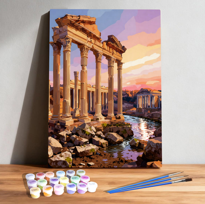 Paint a glowing Roman sunset with this Paint by Numbers kit featuring ancient columns, warm stone textures, and a river reflecting golden evening light. Perfect for beginners, history lovers, and anyone seeking a relaxing, dreamy travel painting.