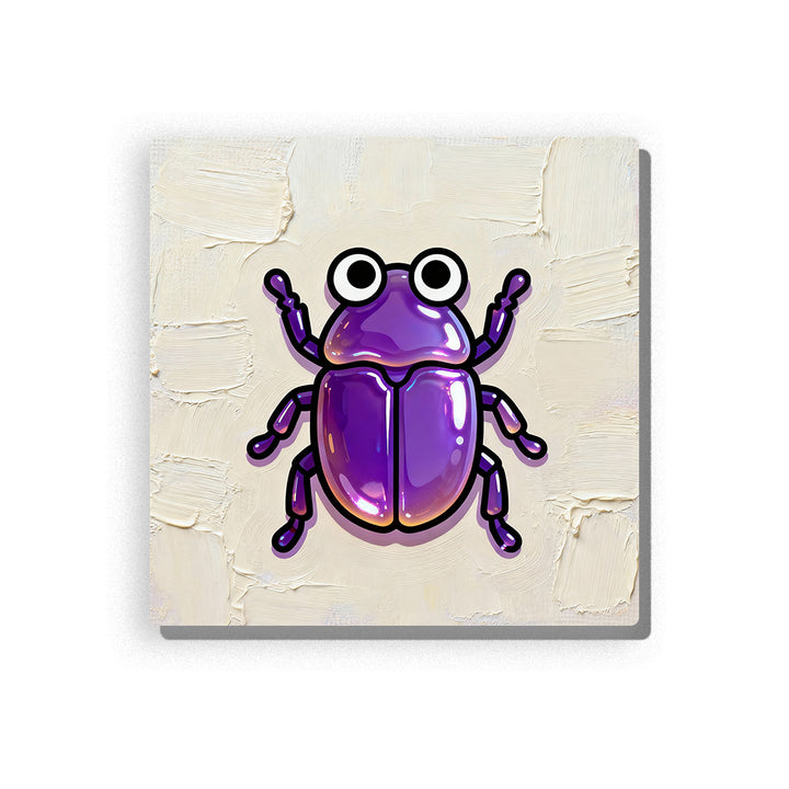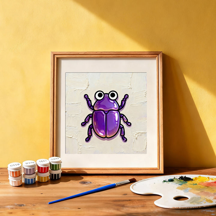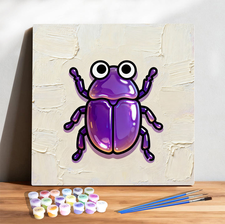 Shiny Purple Beetle on Cream Brushstrokes – Playful Glow & Tiny Bush Friends Paint by Numbers Kit | PaintEasy