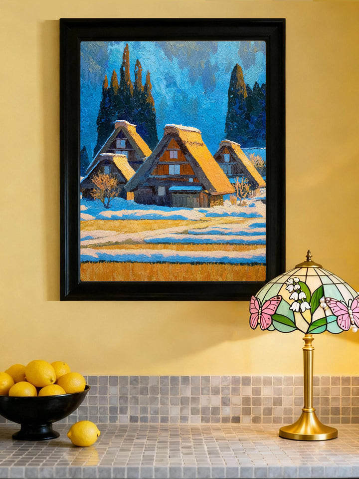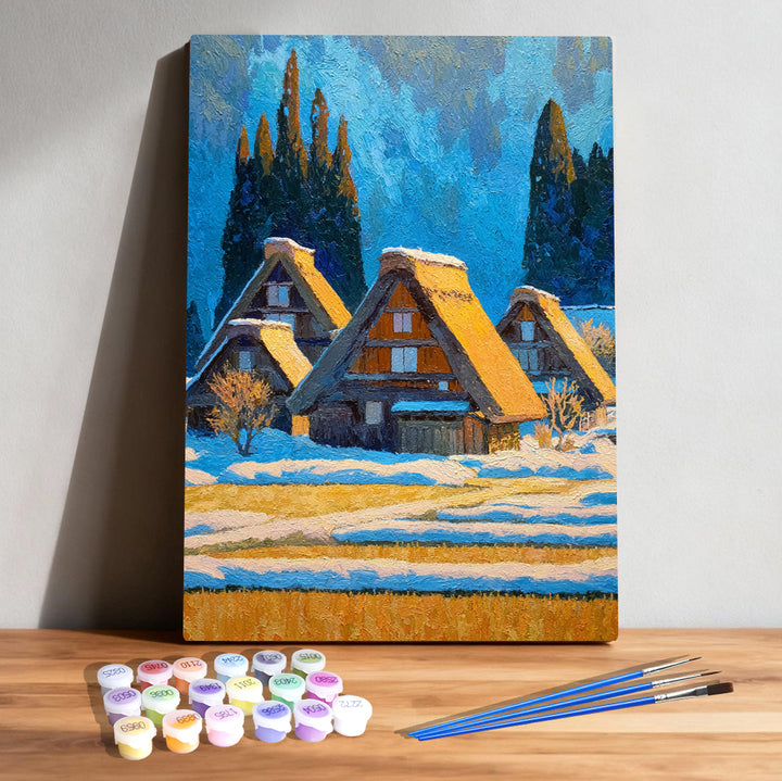 🏔️ Shirakawa-go Winter Village Paint by Numbers Kit | Japan Snow Cottage | PaintEasy