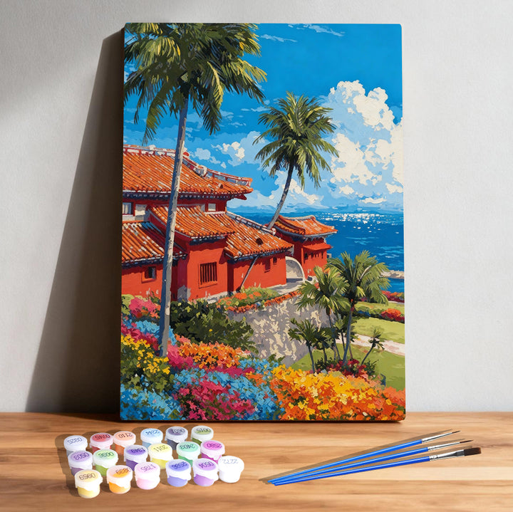 Shurijo Castle Seaside Paint by Numbers Kit | Okinawa Tropical Heritage Scene | PaintEasy