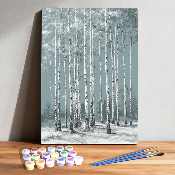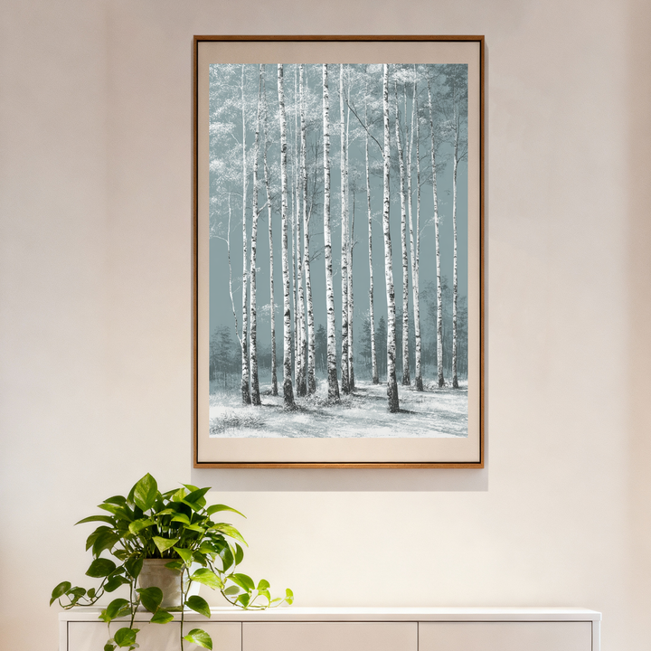 ● 🌿 Minimalist Birch Forest – Elegant vertical rhythm in soft winter tones.