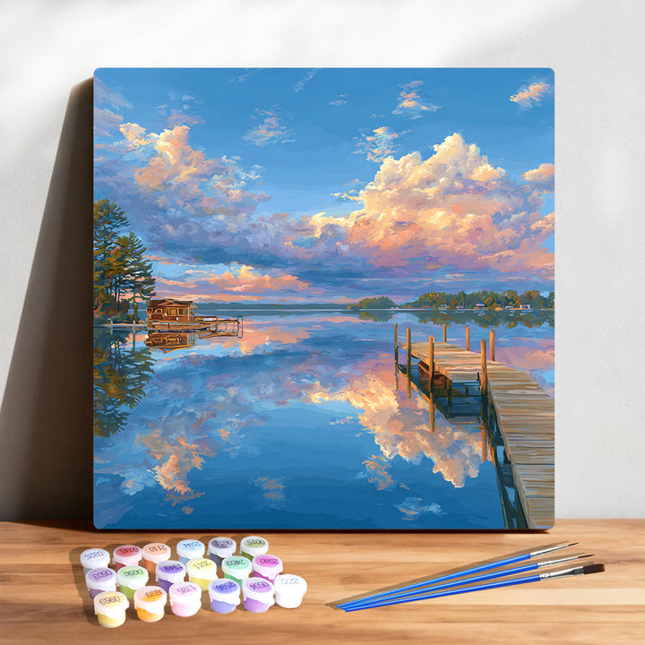 Sky Mirror Sunset Dock Paint by Numbers | PaintEasy