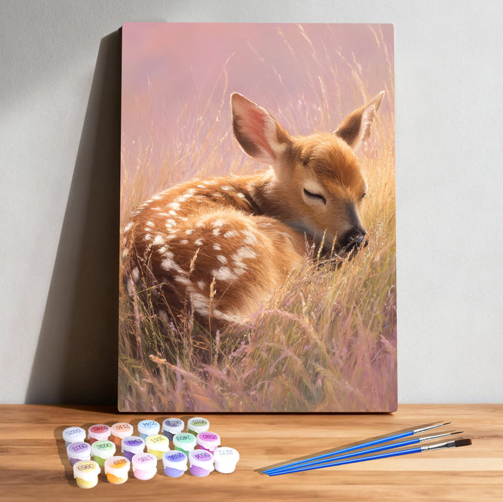 Sleeping Fawn in Sunset Meadow – Paint by Numbers Kit | PaintEasy