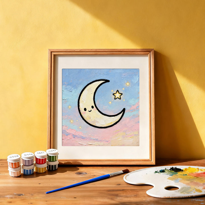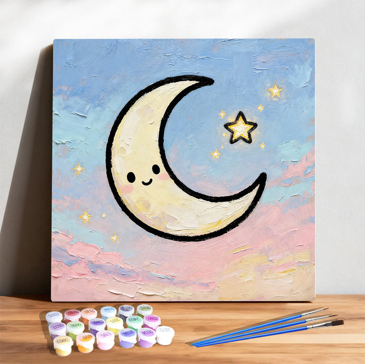 Smiley Moon Glow – Pastel Dream Night Paint by Numbers Kit | PaintEasy