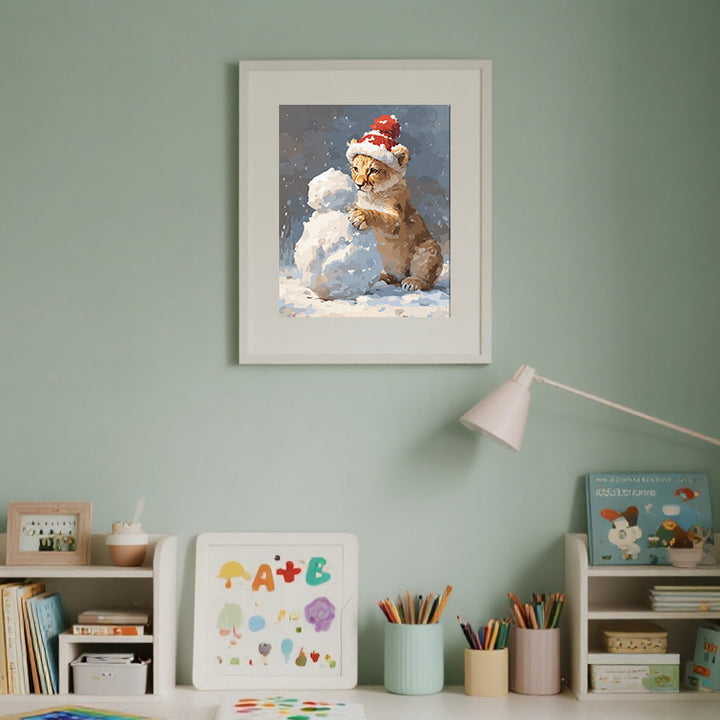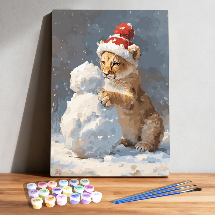 Snow Day Lion Paint by Numbers | Lion Cub in Snow Art Kit | PaintEasy