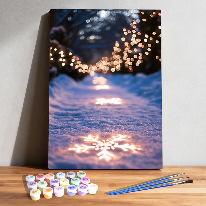 Snowlight Path Paint by Numbers | Glowing Snowflake Lights Winter Scene | PaintEasy