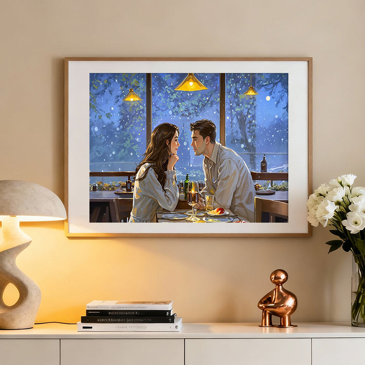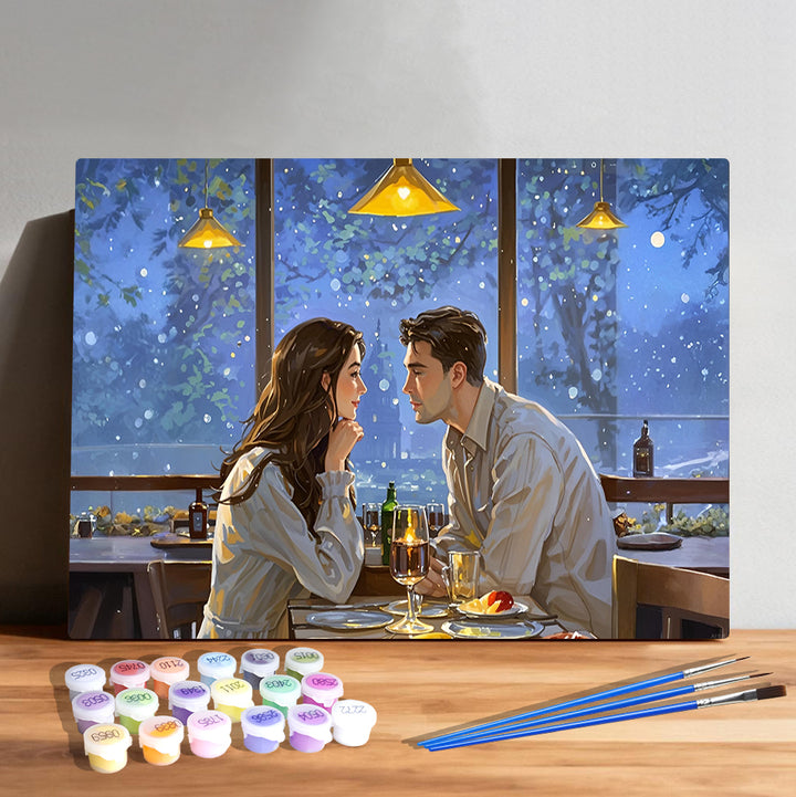 Snowy Night Dinner Gaze – Romantic Couple Paint by Numbers Kit | PaintEasy