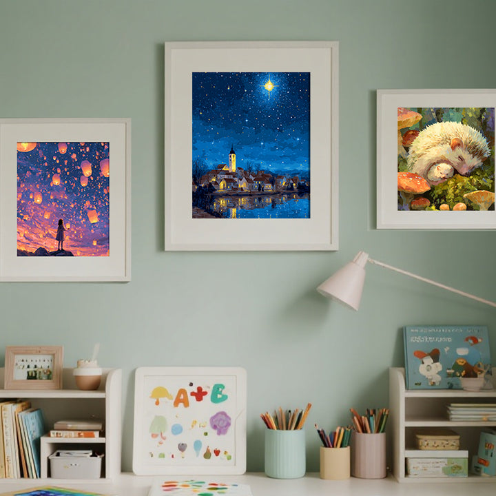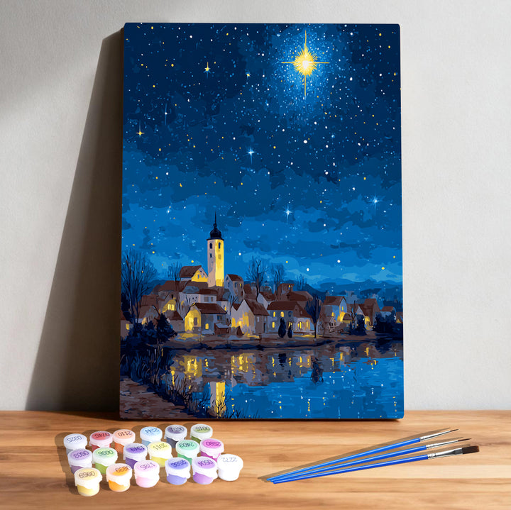 Star of Bethlehem Over Cozy Night Village – Holy Christmas Light & Peaceful Starlit Skies Paint by Numbers Kit | PaintEasy