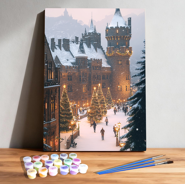 ● 🏰 Snow Castle Street – A cinematic blend of architecture, history, and light.