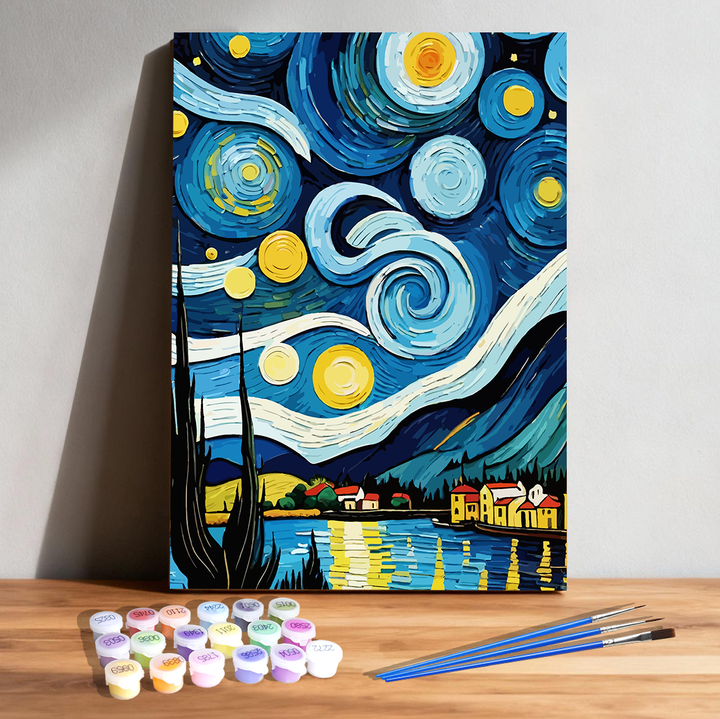 Starry Coast Paint by Numbers | Van Gogh Inspired Sunflower & Lake Art for Kids | PaintEasy