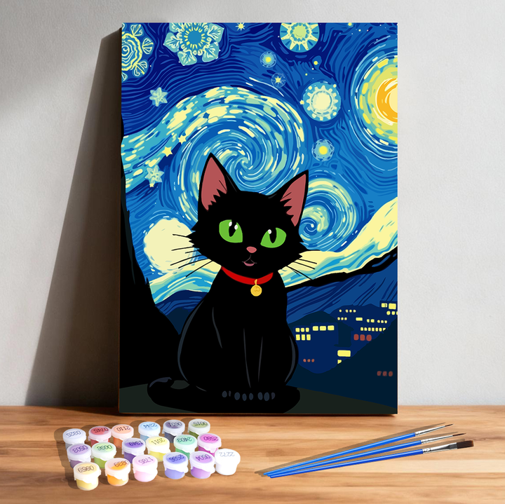 ● 🐾 Cute Black Cat Design – Inspired by Van Gogh’s brushstrokes, reimagined for kids.