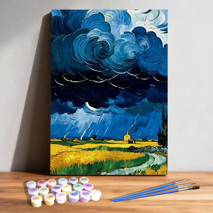 Storm over Wheatfield Paint by Numbers | Van Gogh Inspired Sky and Nature Art for Kids | PaintEasy