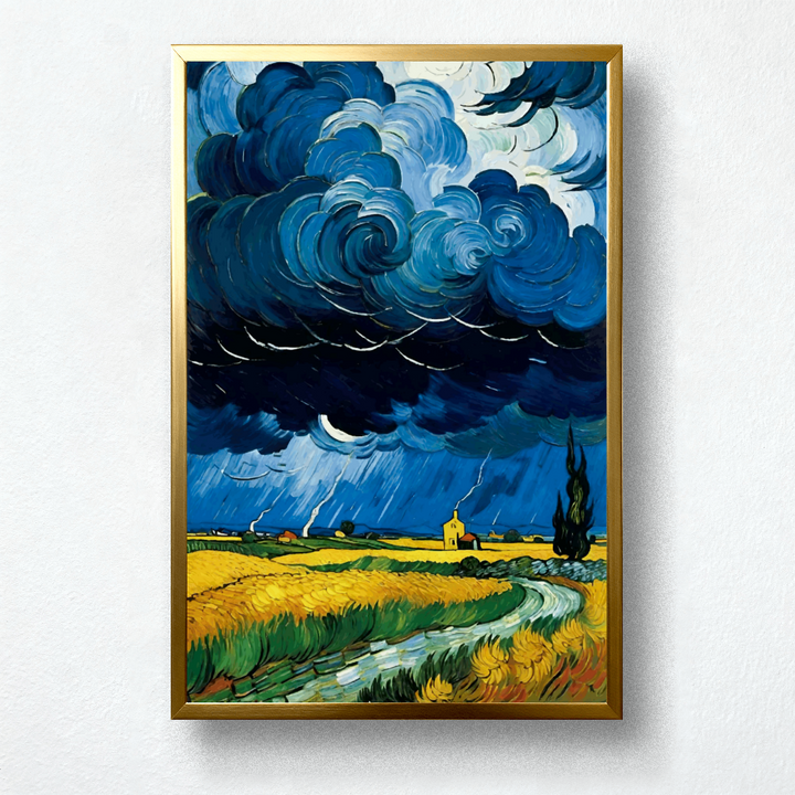 ● 🌩️ Van Gogh Inspired Storm Scene – Dramatic sky meets golden wheat.