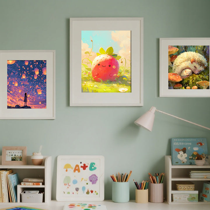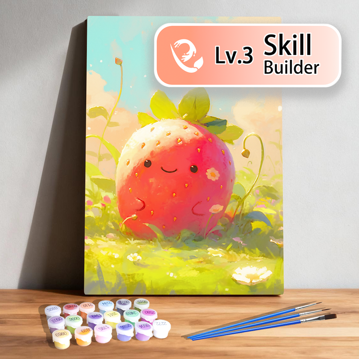 Strawberry Baby with Tiny Leaf Hat-Strawberry Meadow Daydream – Cute Berry Friends Paint by Numbers Kit | PaintEasy