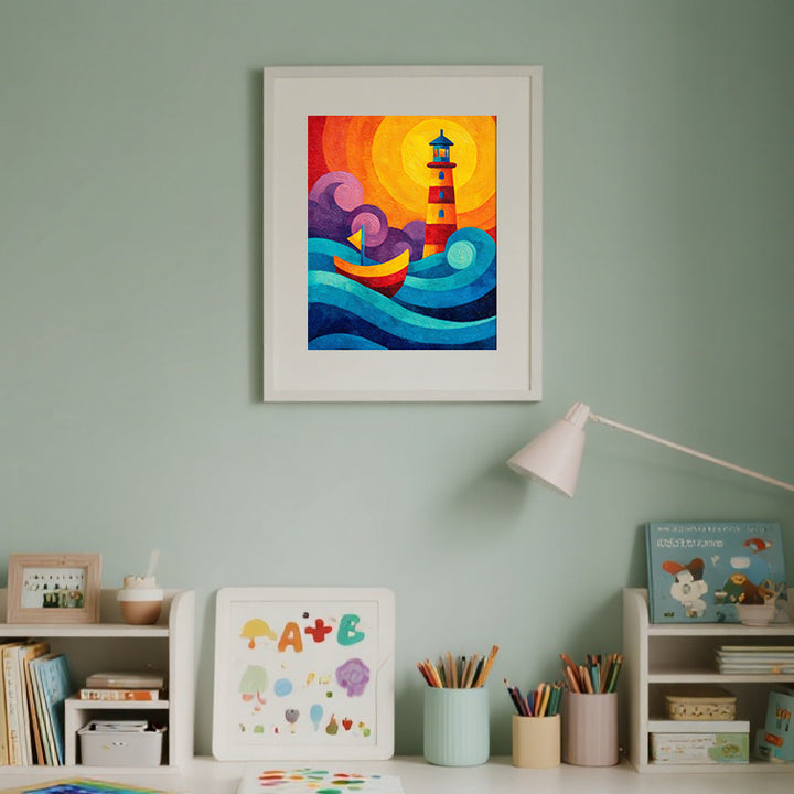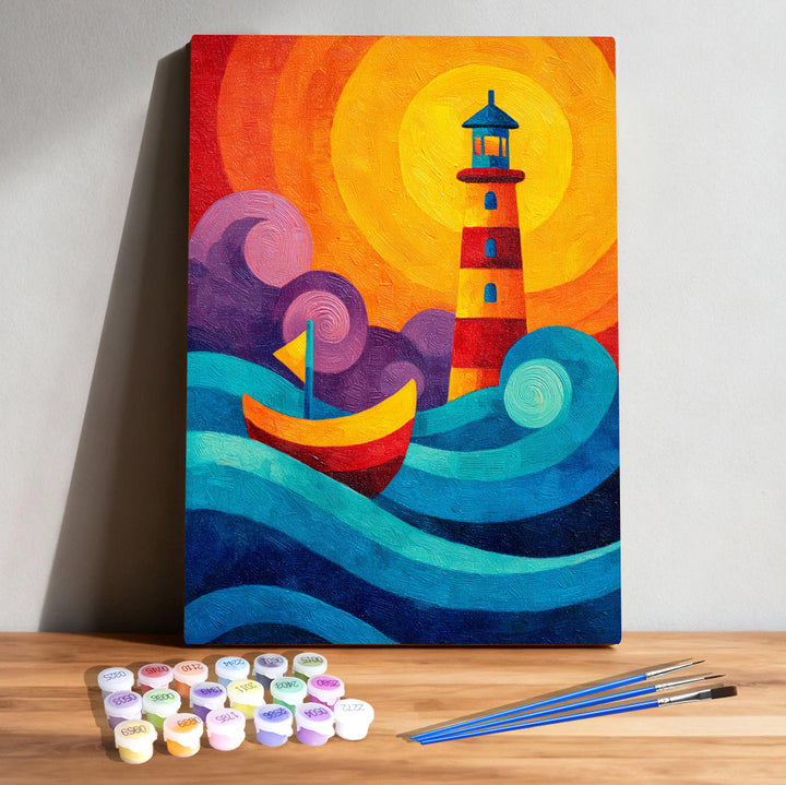 Sunburst Waves Lighthouse – Kids Paint by Numbers Kit | PaintEasy