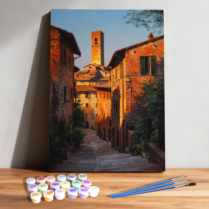 Sunlit Brick Alley – Siena Italy Paint by Numbers Kit | PaintEasy