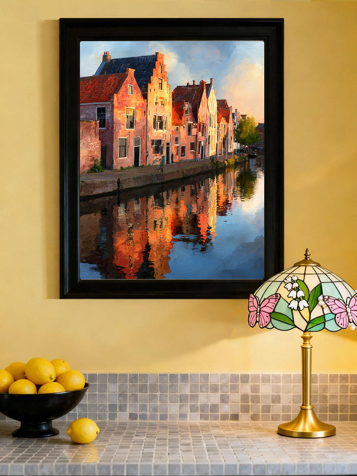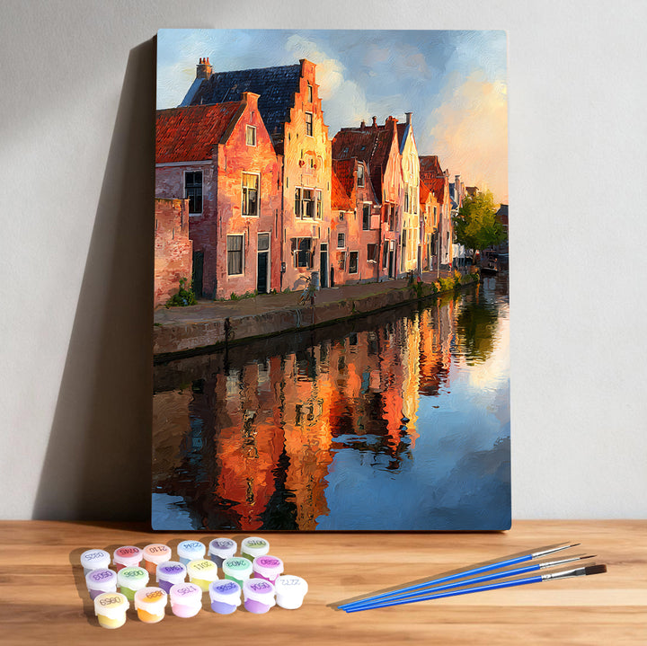 Sunlit Canal Houses – Netherlands Paint by Numbers Kit | PaintEasy