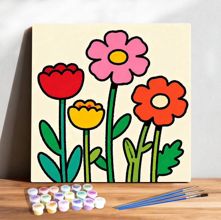 Sunny Garden Blooms – Cute Colorful Flowers Paint by Numbers Kit | PaintEasy
