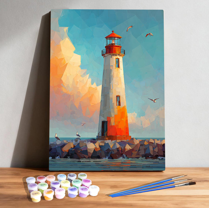 Sunny Seagull Lighthouse – Kids Paint by Numbers Kit | PaintEasy