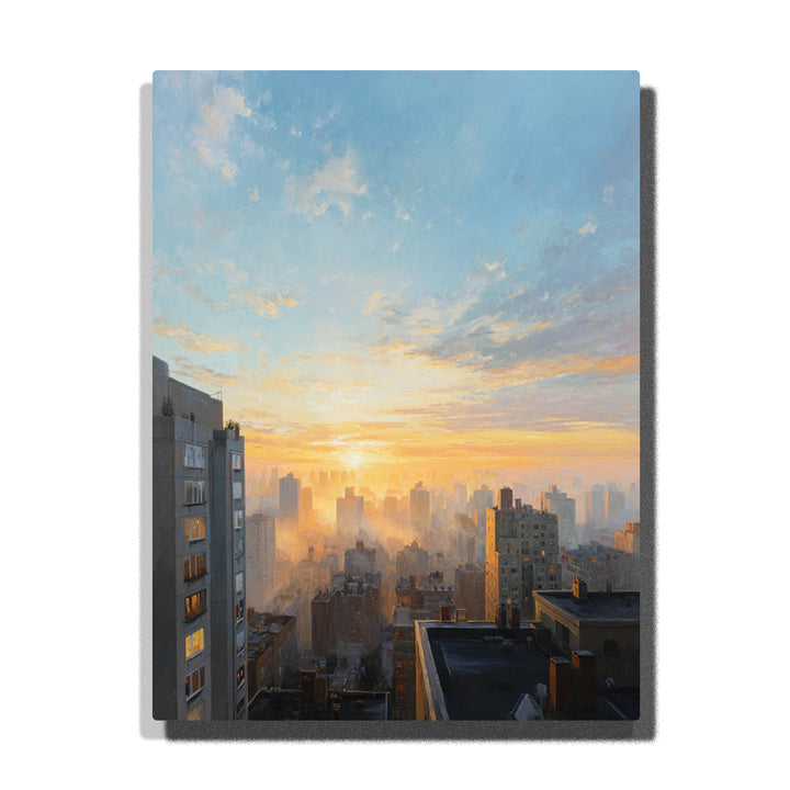 ● 🌅 Radiant Sunrise Glow – Soft golden light washing over distant towers.