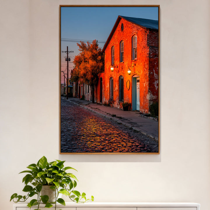 Sunset Brick Row captures a historic red-brick façade glowing under the last rays of the day.