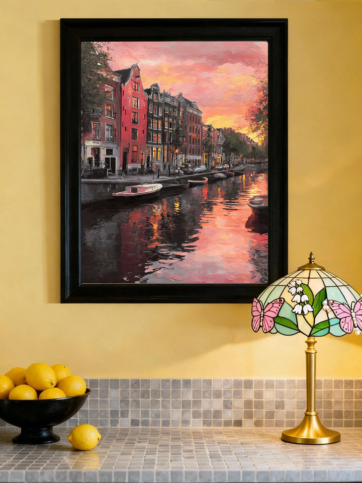 Sunset Canal Reflections – Amsterdam Paint by Numbers Kit | PaintEasy