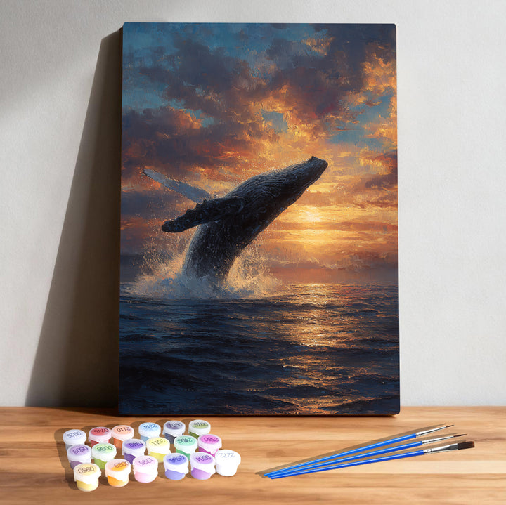 🐋 Sunset Leap – Humpback Whale Paint by Numbers Kit | Ocean Wildlife Art | PaintEasy