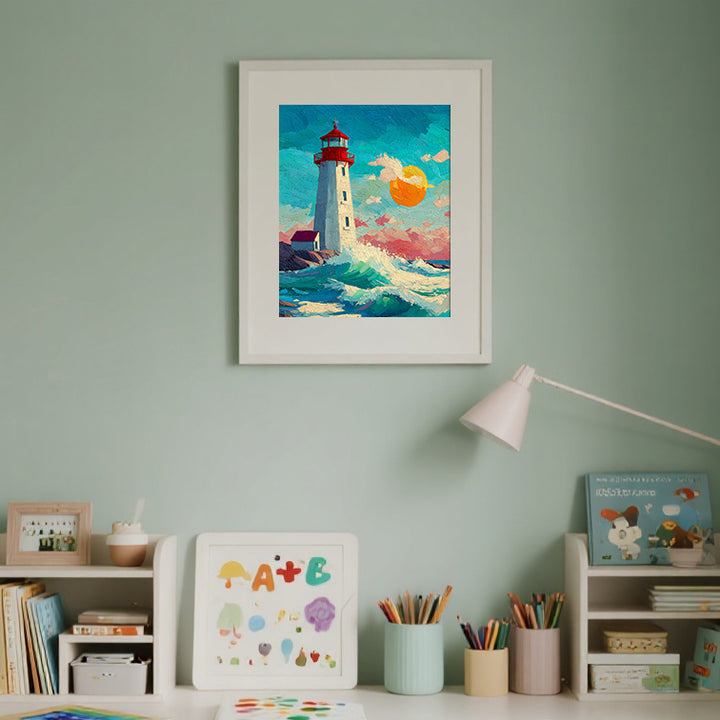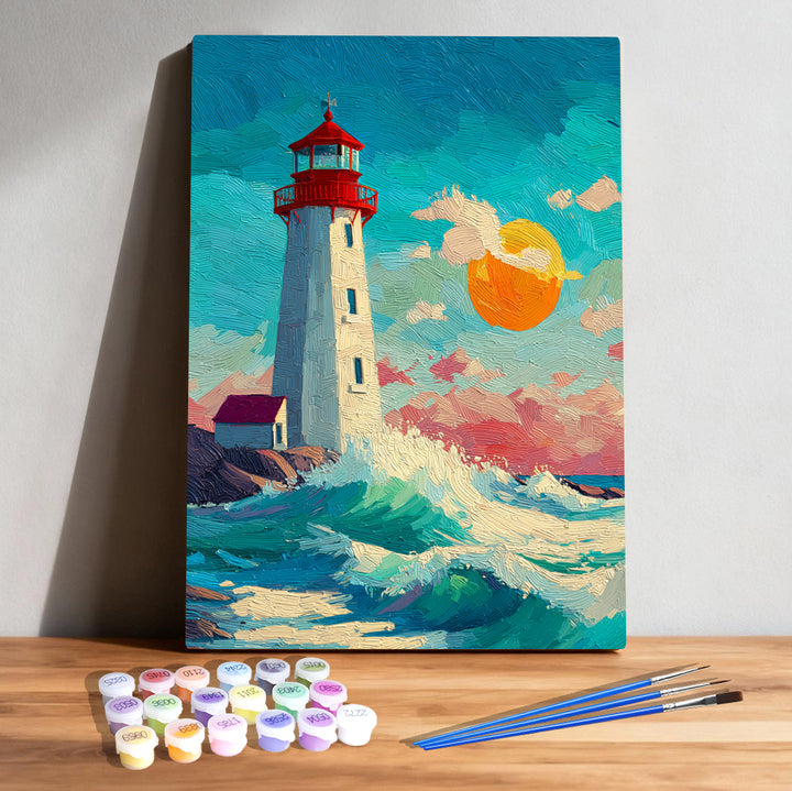 Sunset Wave Guardian – Kids Lighthouse Paint by Numbers Kit | PaintEasy