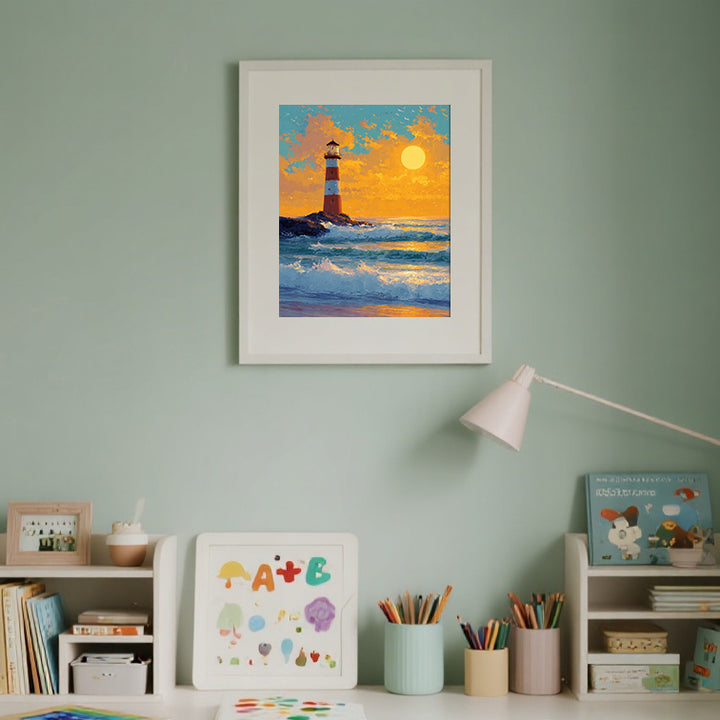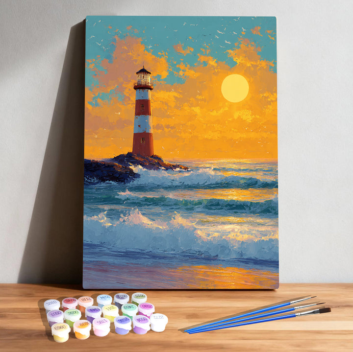 Sunset Waves Lighthouse – Kids Paint by Numbers Kit | PaintEasy