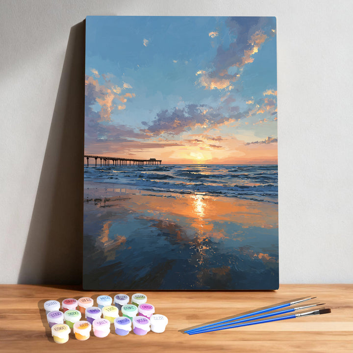 Sunset Waves & Pier – Coastal Paint by Numbers Kit | PaintEasy