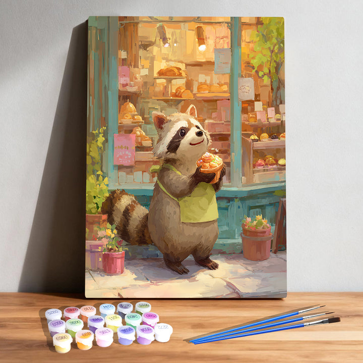 Sweet Bakery Raccoon – Kids Paint by Numbers Kit | PaintEasy