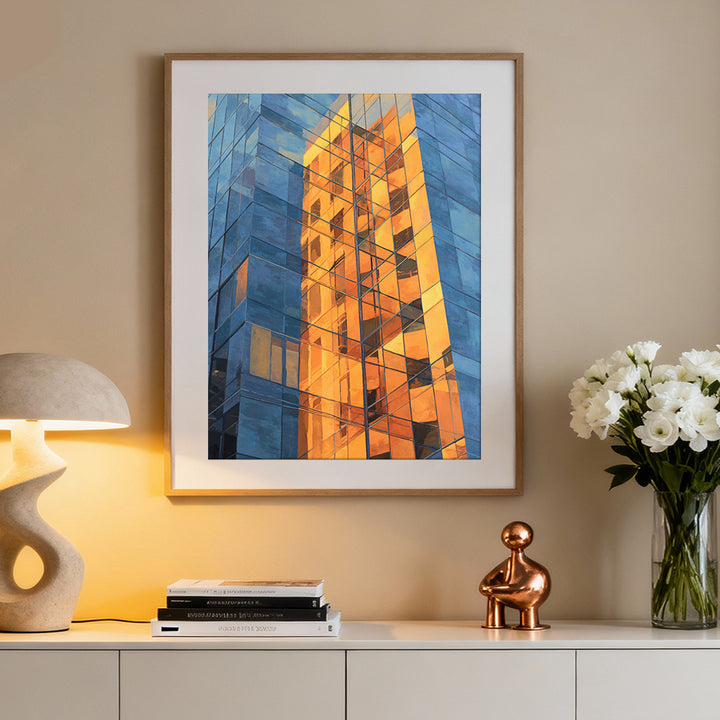 ● 🏙️ Bold Urban Contrast – Cool blue glass set against radiant amber reflections.