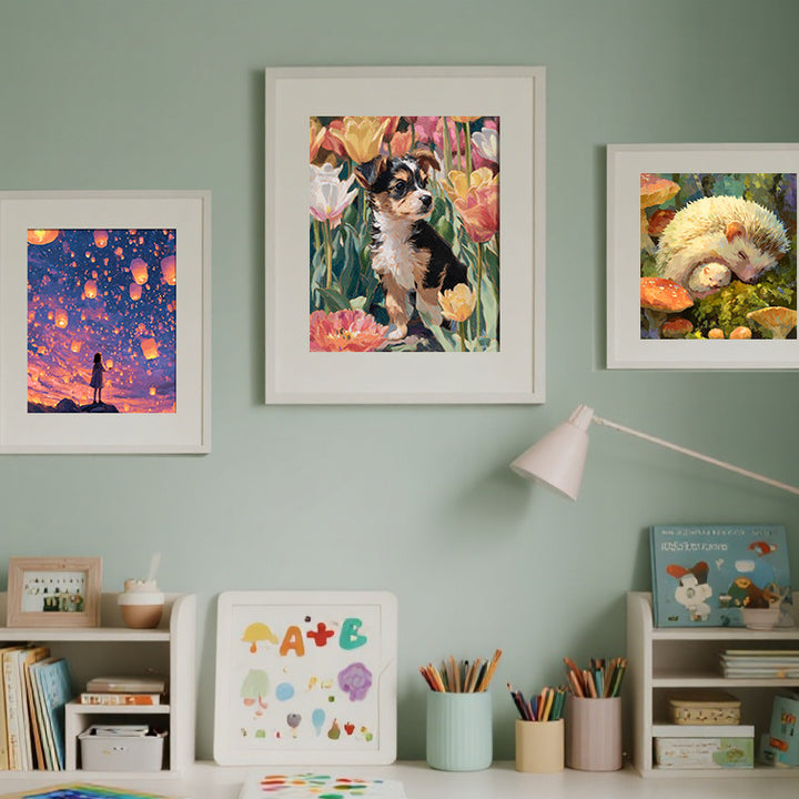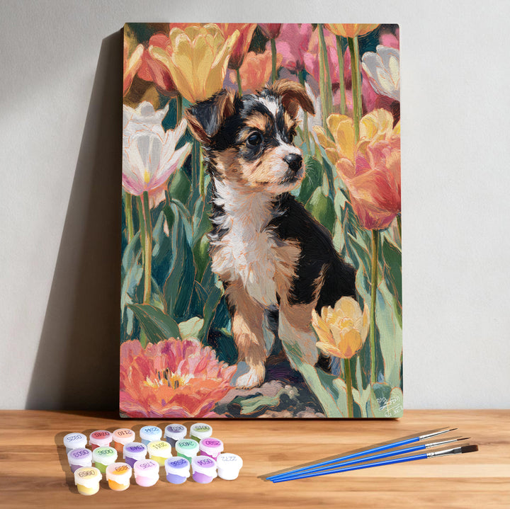 Tulip Garden Puppy – Kids Paint by Numbers Kit | PaintEasy