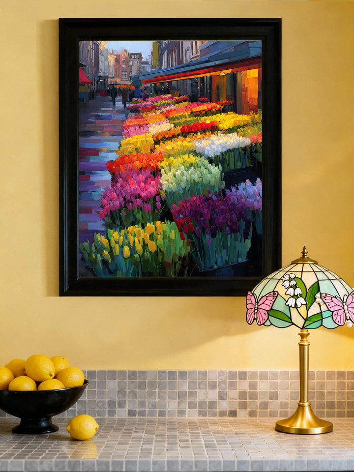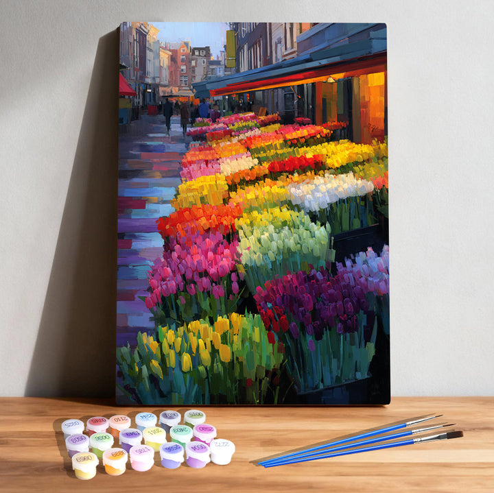Tulip Market Morning – Netherlands Paint by Numbers Kit | PaintEasy