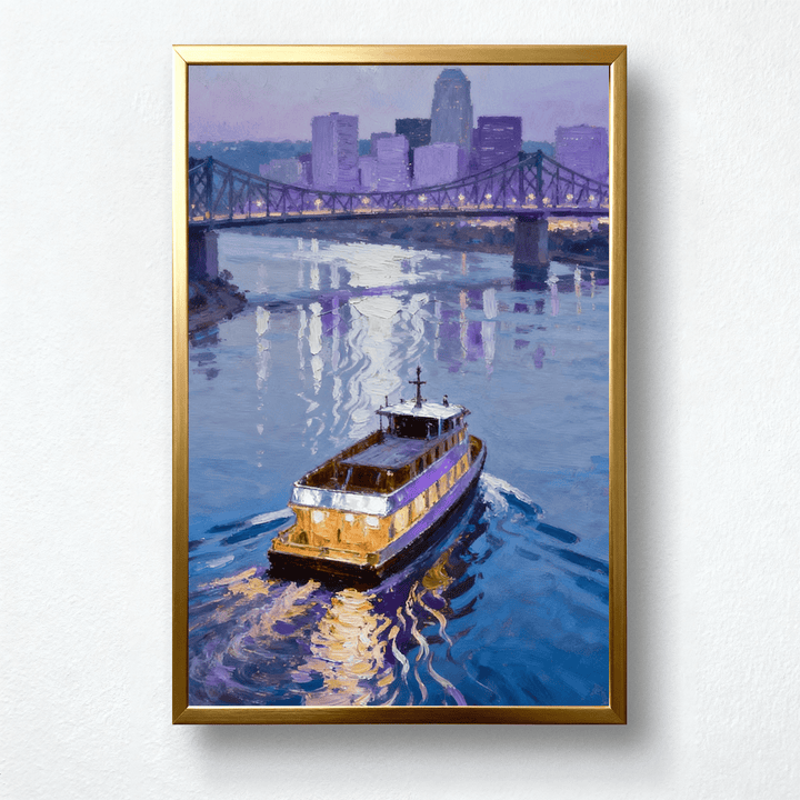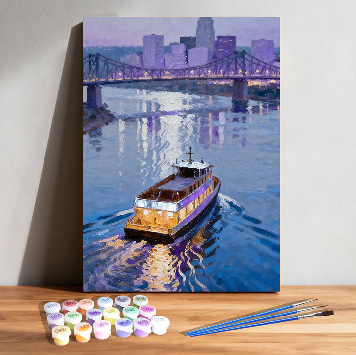 Twilight Voyage Paint by Numbers | City River Boat at Dusk Scene
