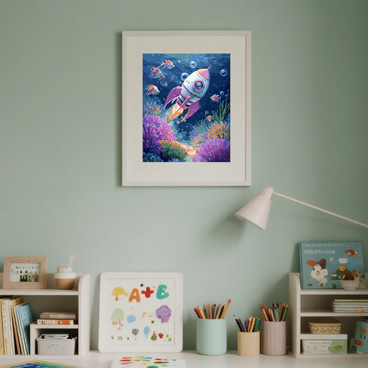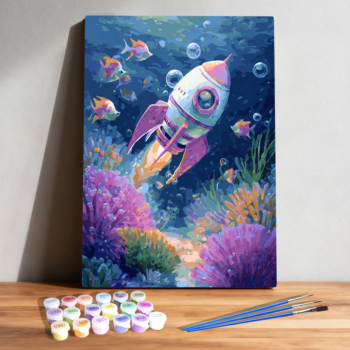 Underwater Rocket Adventure Paint by Numbers | Kids Space & Ocean Adventure Art Kit | PaintEasy