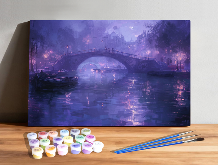 Velvet Twilight Paint by Numbers | Romantic Night Bridge & River Reflections | PaintEasy®