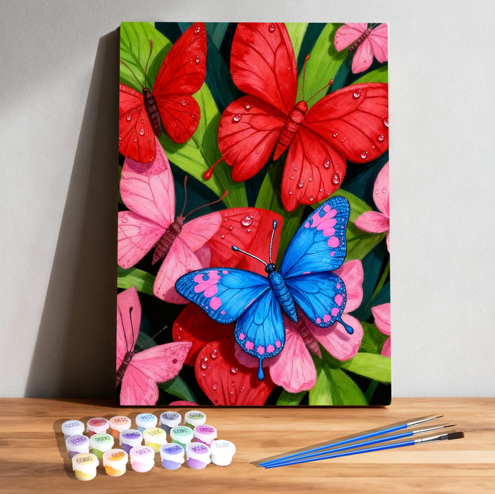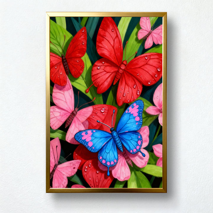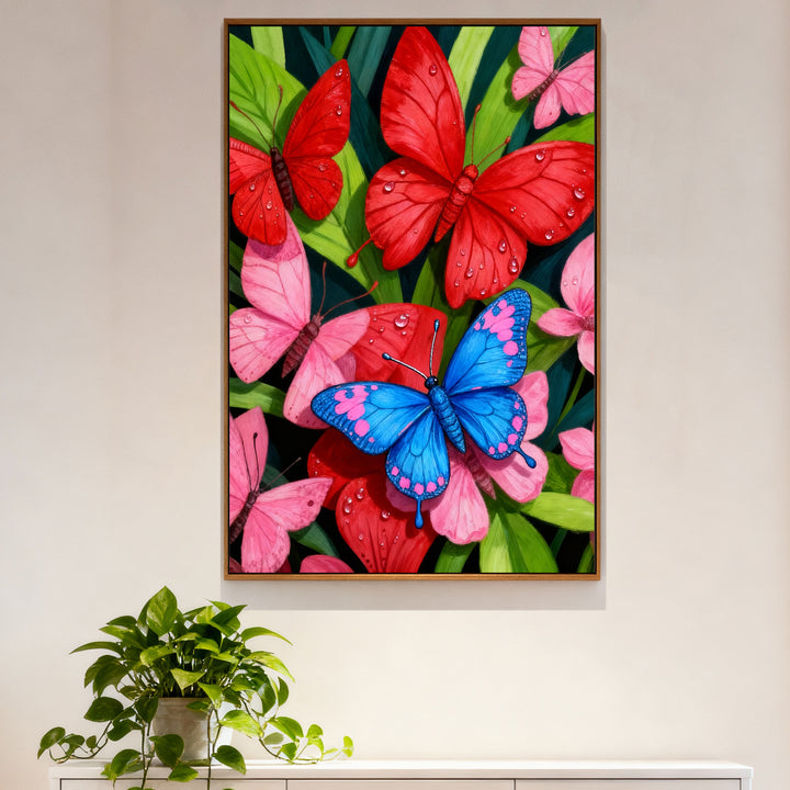 Vibrant Garden Butterflies brings a joyful clash of reds, pinks, and electric blue —