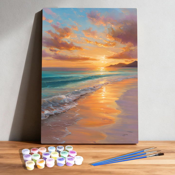 ✨ Paint a peaceful sunset where the sea glows, the sky softens, and the horizon feels infinite.