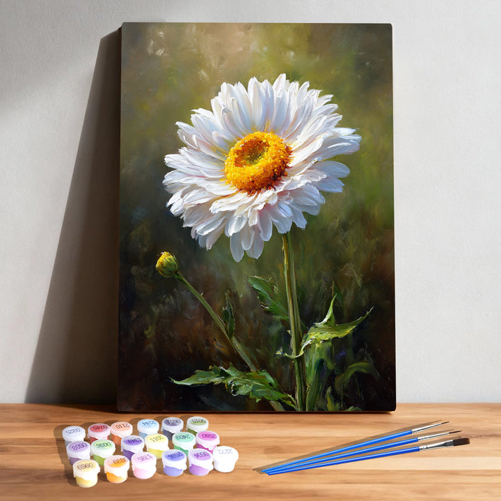 White Marguerite Daisy Bloom Paint by Numbers | Elegant Floral Still Life Art Kit | PaintEasy