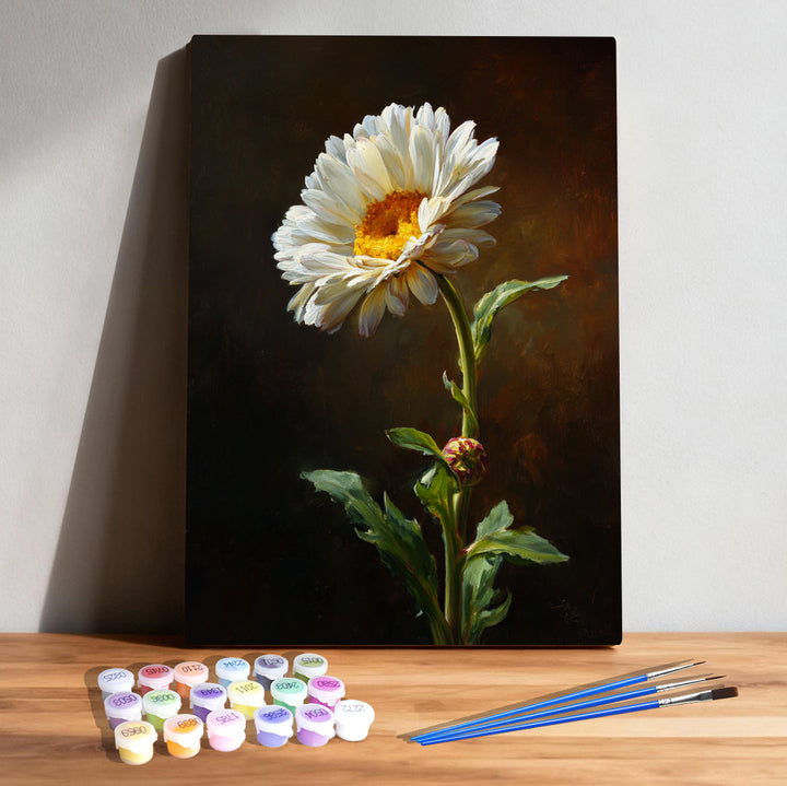 White Marguerite Daisy Paint by Numbers | Elegant Floral Still Life Art Kit | PaintEasy