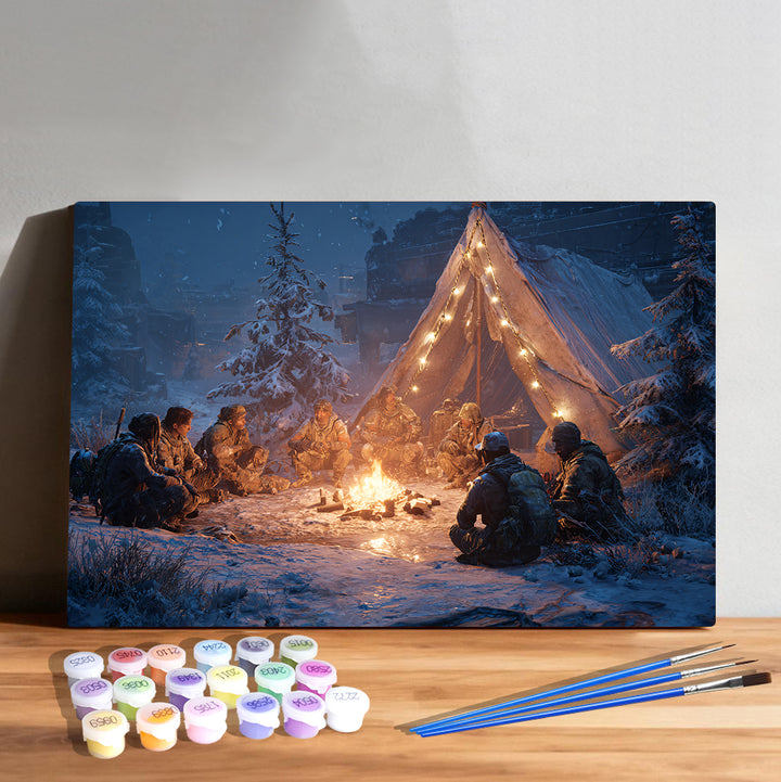 Winter Camp Paint by Numbers | Campfire Companionship Winter Scene | PaintEasy