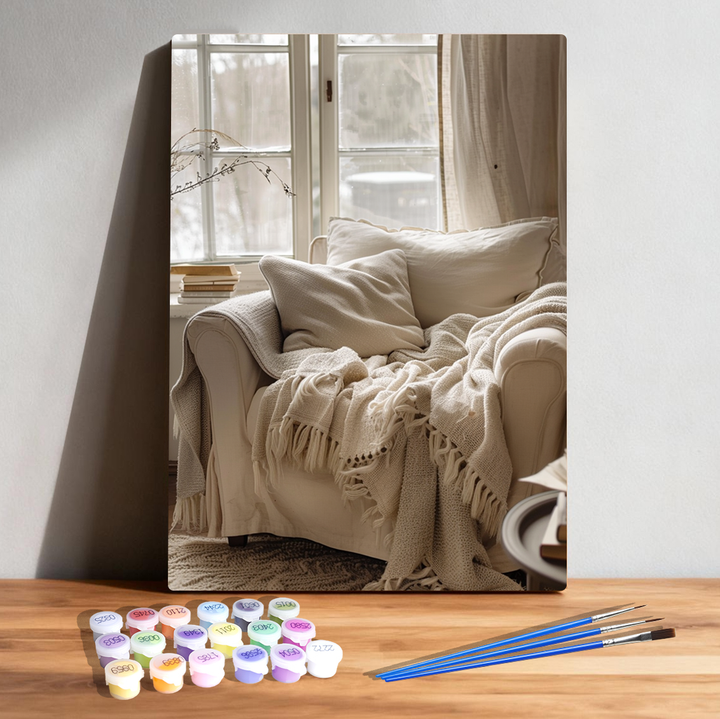 ● 🛋️ Cozy Armchair Composition – Evokes comfort, solitude, and quiet self-care.