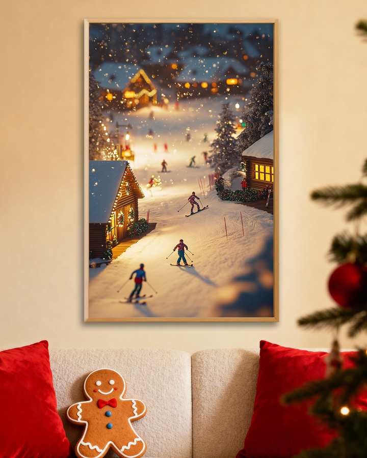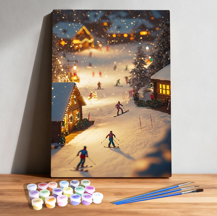 ● 🎿 Alpine Ski Resort Scene – A lively snow village glowing under warm light.