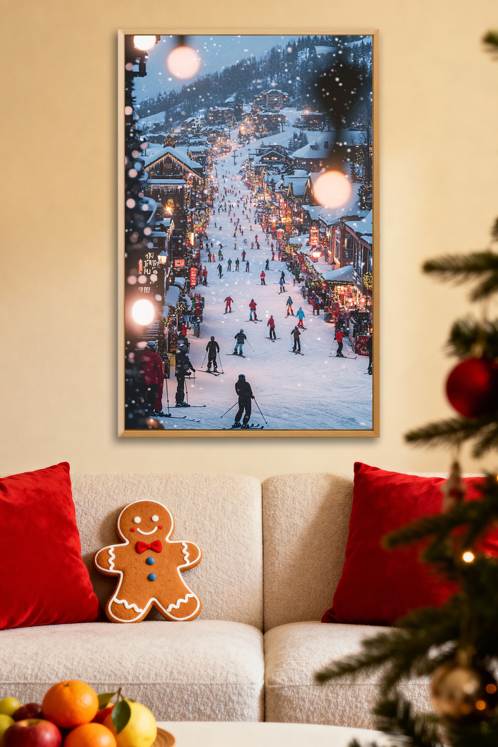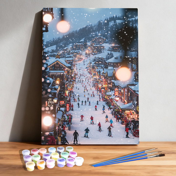 ● 🎿 Ski Village Scene – A joyful composition filled with life and light.
